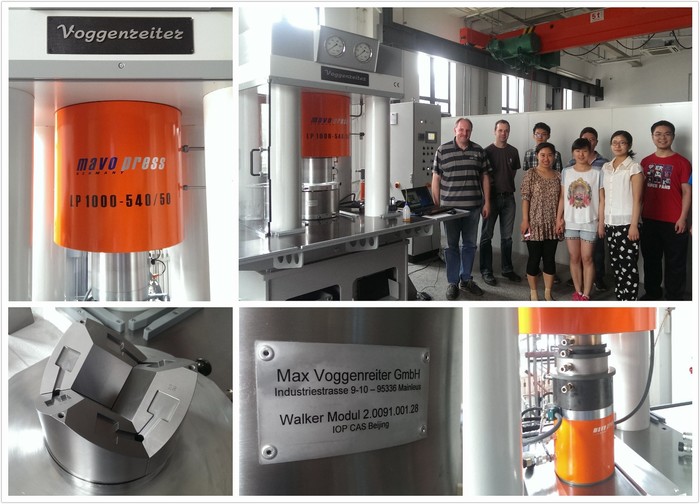 2014年6月,德國Max Voggenreiter(沃根瑞特)的專家Michael Petri和Frank Sunkel到中科院物理所(北京)進(jìn)行了國內(nèi)首臺(tái)Mavo LP1000 高溫高壓爐(Multi-Anvil大腔體壓機(jī))的安裝培訓(xùn)。設(shè)備穩(wěn)定的加壓加溫性能、卓越的控制精度、易用的自動(dòng)控制以及完善的安全保護(hù),贏得了中科院物理所用戶的肯定。